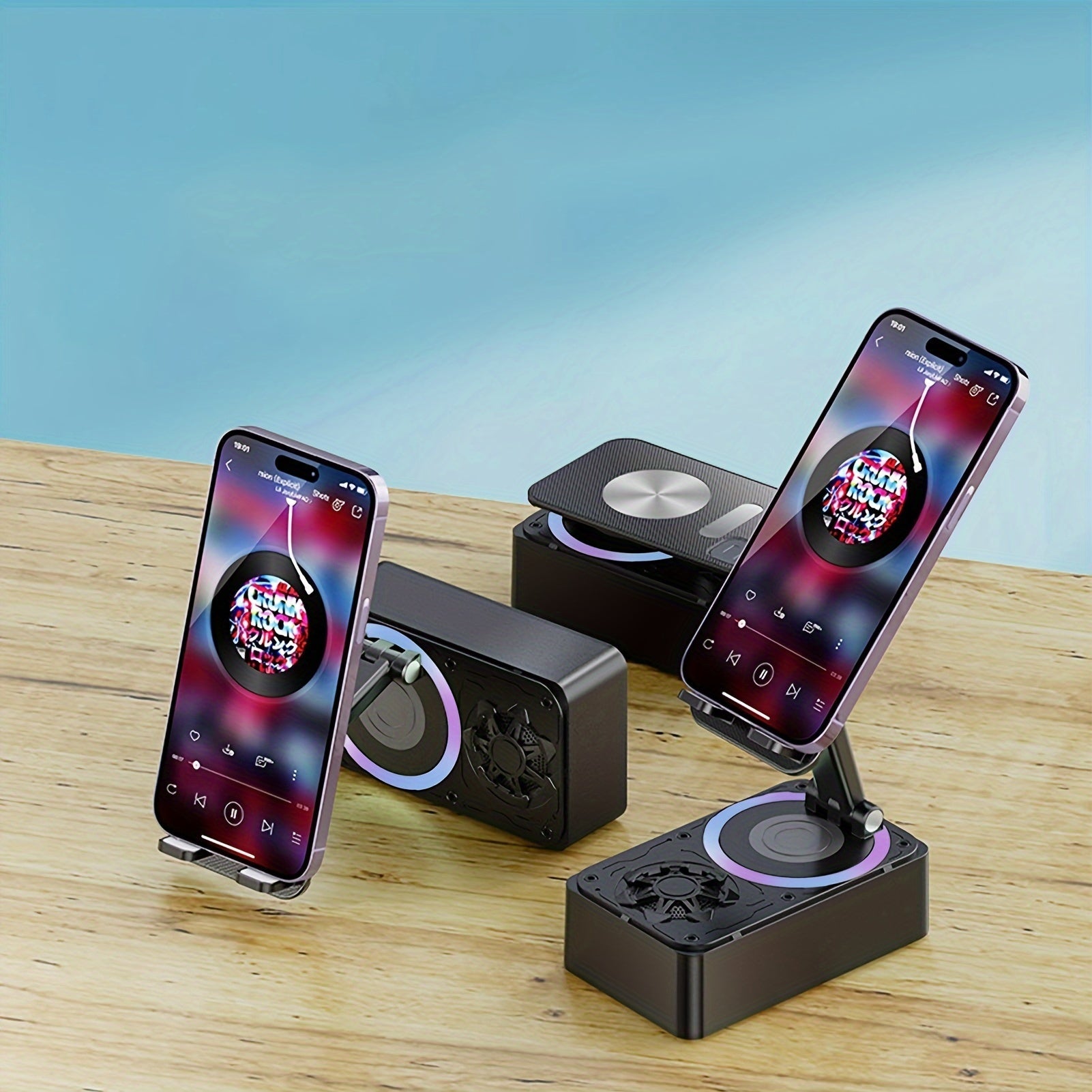 1pc XSound 3-in-1 Magnetic Phone Stand with LED Lights, USB Charging Stereo Speaker, Portable Wireless Microphone, Flexible